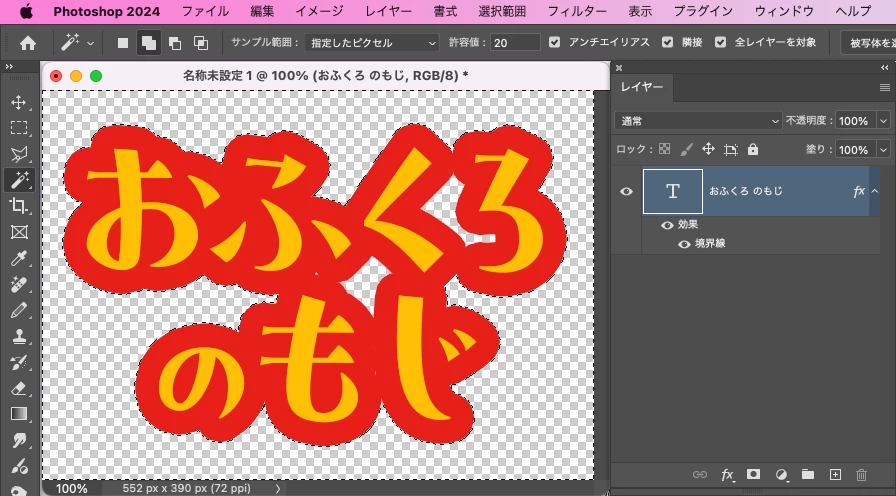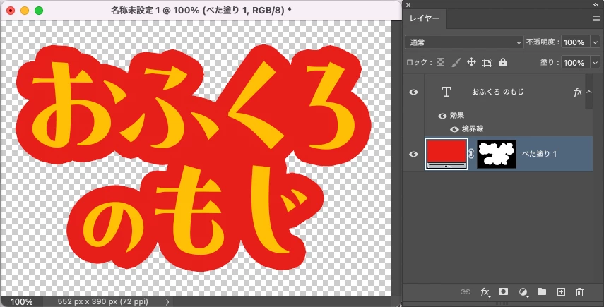 Photoshopでの袋文字制作時に文字の隙間を埋める方法について