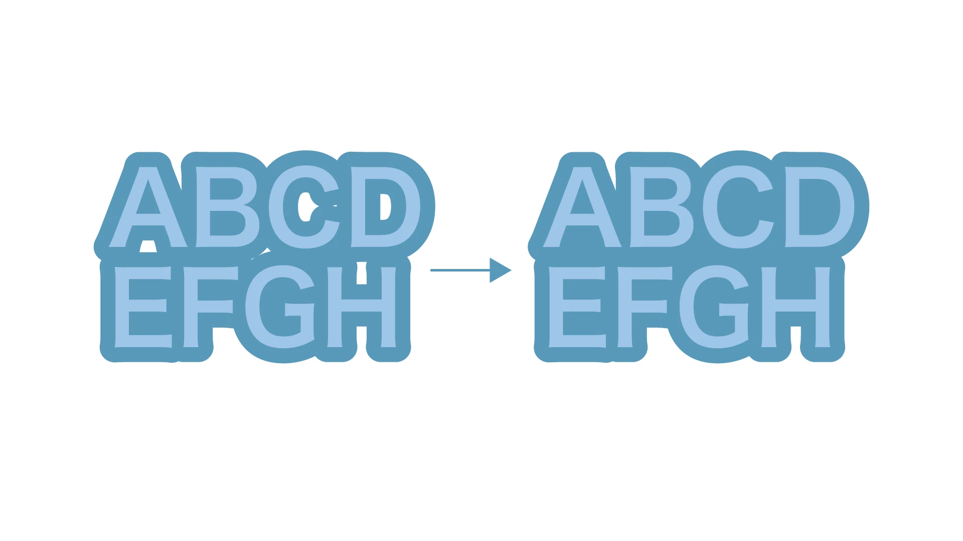 添付画像の右側のような、文字の隙間が埋まった袋文字を作成したいです。