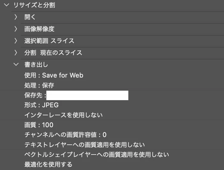 Photoshopでスライスした画像をJPGで書き出すバッチ機能を作りたい