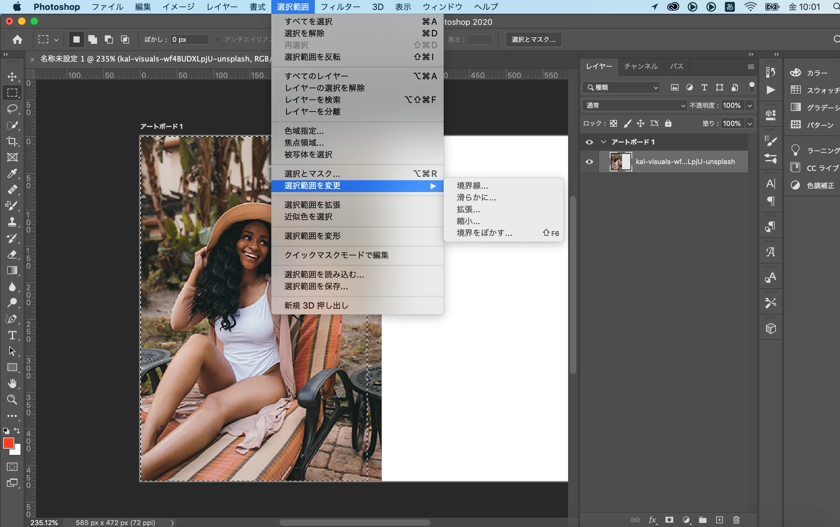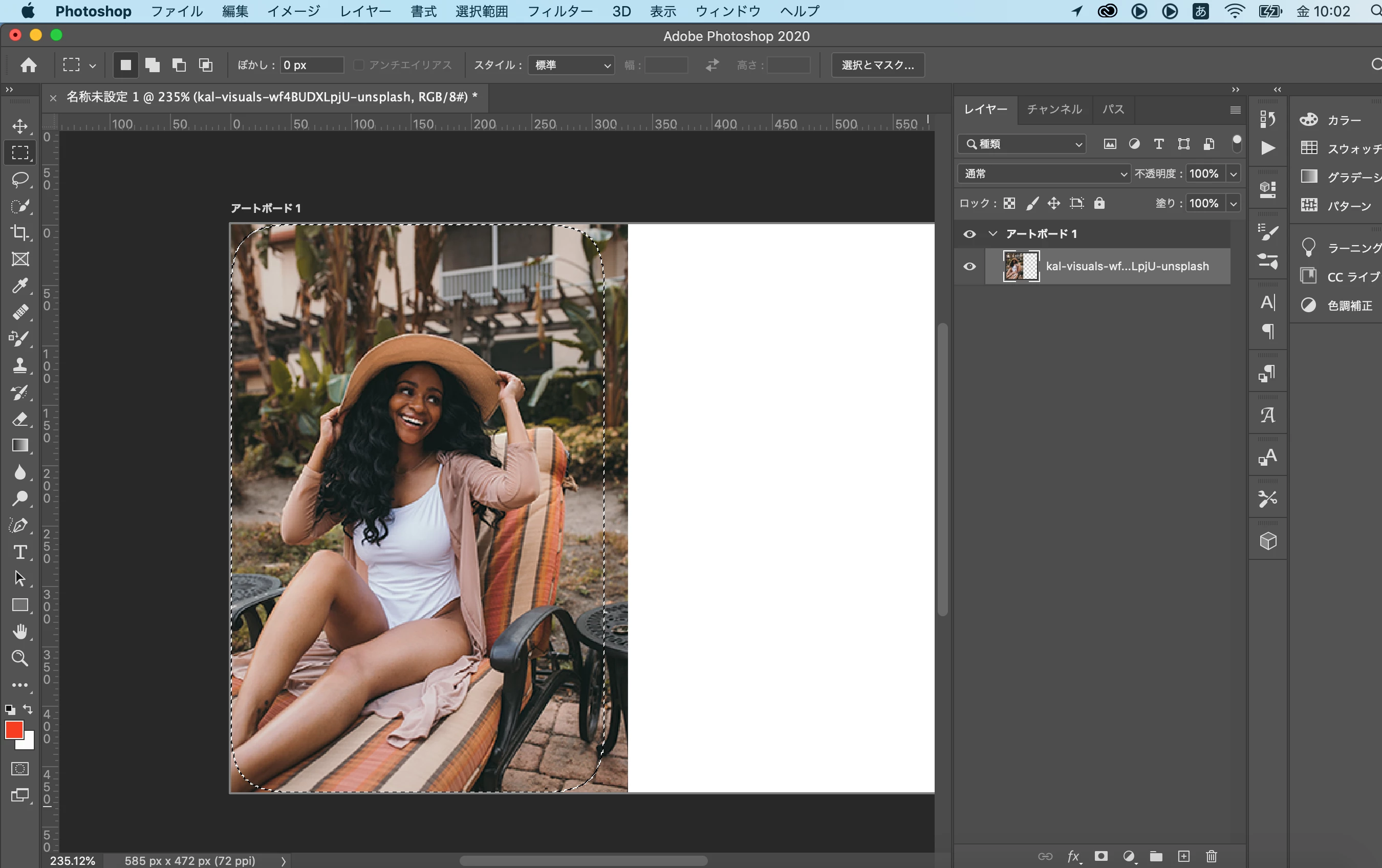 ①長方形選択ツールから境界線をぼかすところの画面キャプチャです。