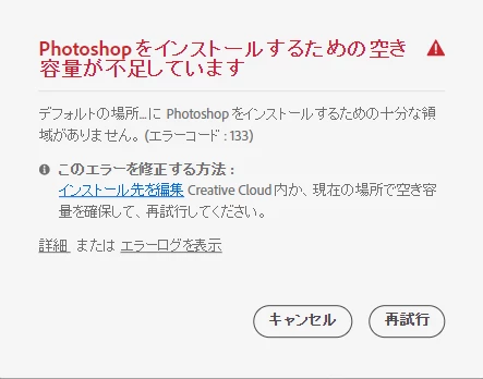 Photoshopのインストールが出来ません。