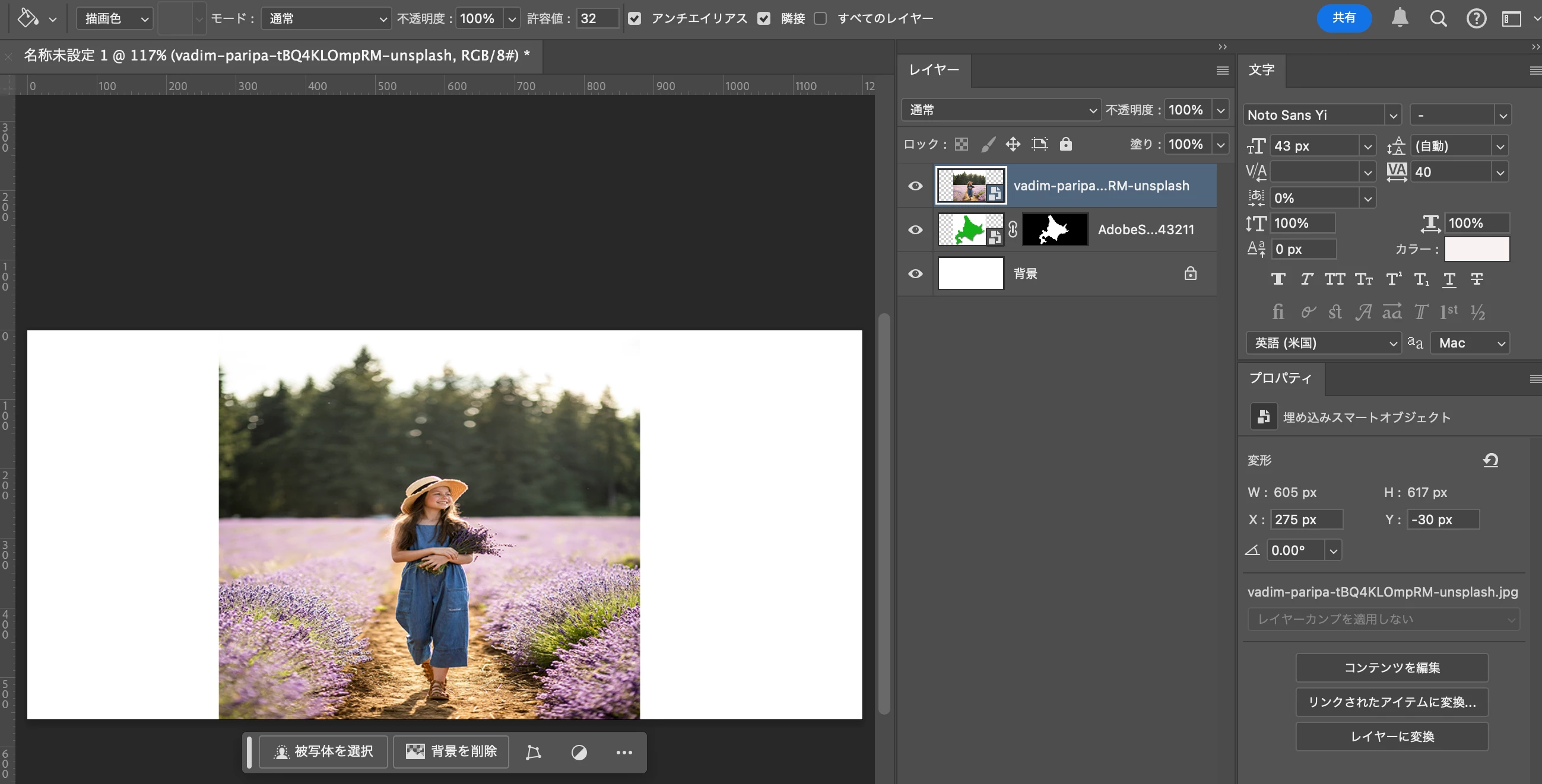 教材を見ながらその通りに練習中ですが、下のレイヤー(地図)に一つ上にある階層の写真(人物)を