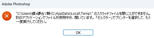 photoshopのショートカットで起動しようとすると、スクラッチファイルを開くことができません。と出てきて起動できません。