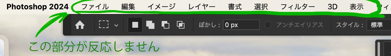 Photoshopのメニューバーが反応しなくなる