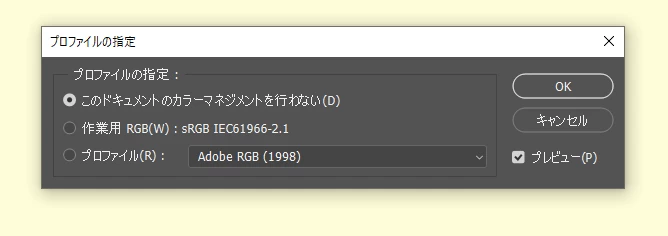 校正設定からモニターRGBを選択すると白色に戻るのですが、またプロジェクトを新規作成した時に、校正設定でモニターRGBが選択されている状態にもかかわらずクリーム色に戻ります。