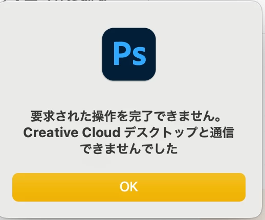 周平福91006578ParticipantForum|Forum|3 years agoMarch 8, 2023質問Photoshopを使用できないですForum|Forum|3 years agoMarch 8, 2023返信数 1.8584 ビュー要求された操作を完了できません。Creative Cloud デスクトップと通信できませんでしたと表示されてPhotoshopを使用できないです。どのようにすれば使用できますか?macOS