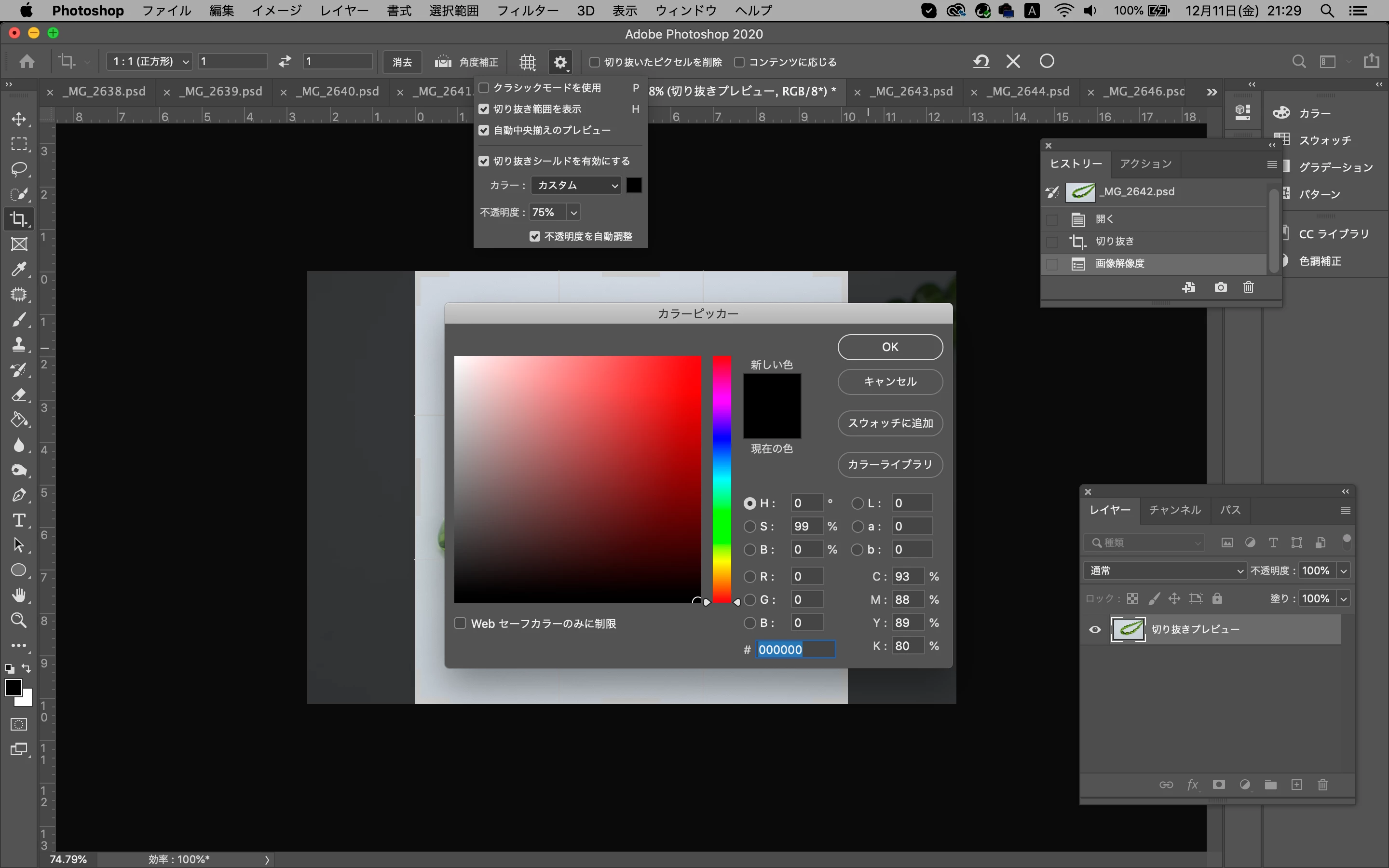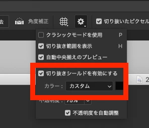 Photoshop 切り抜きツールのオーバーレイが白くなってしまった。黒に戻したい。