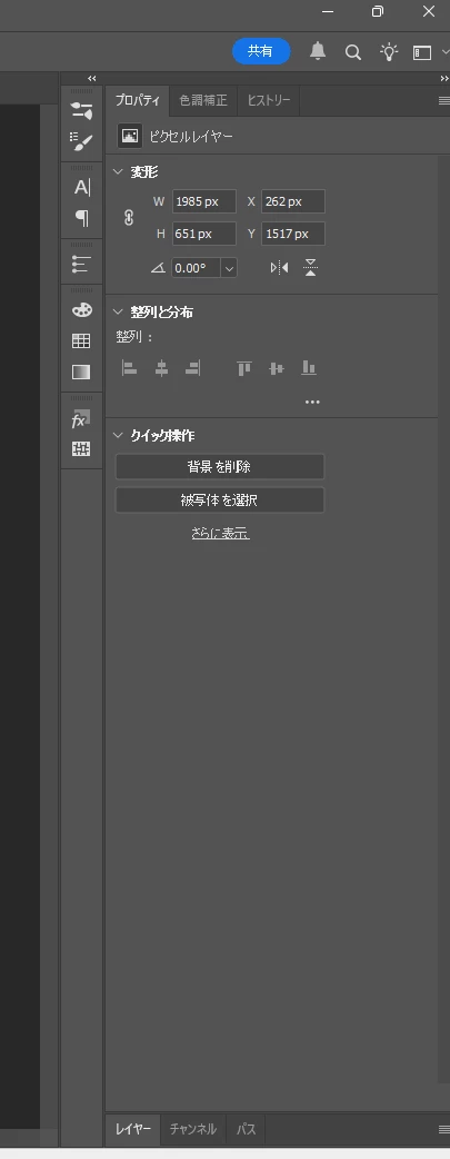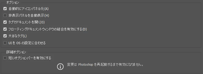 【photoshop】起動した時にワークスペースのレイヤー等のパネルがタブだけの状態になっている