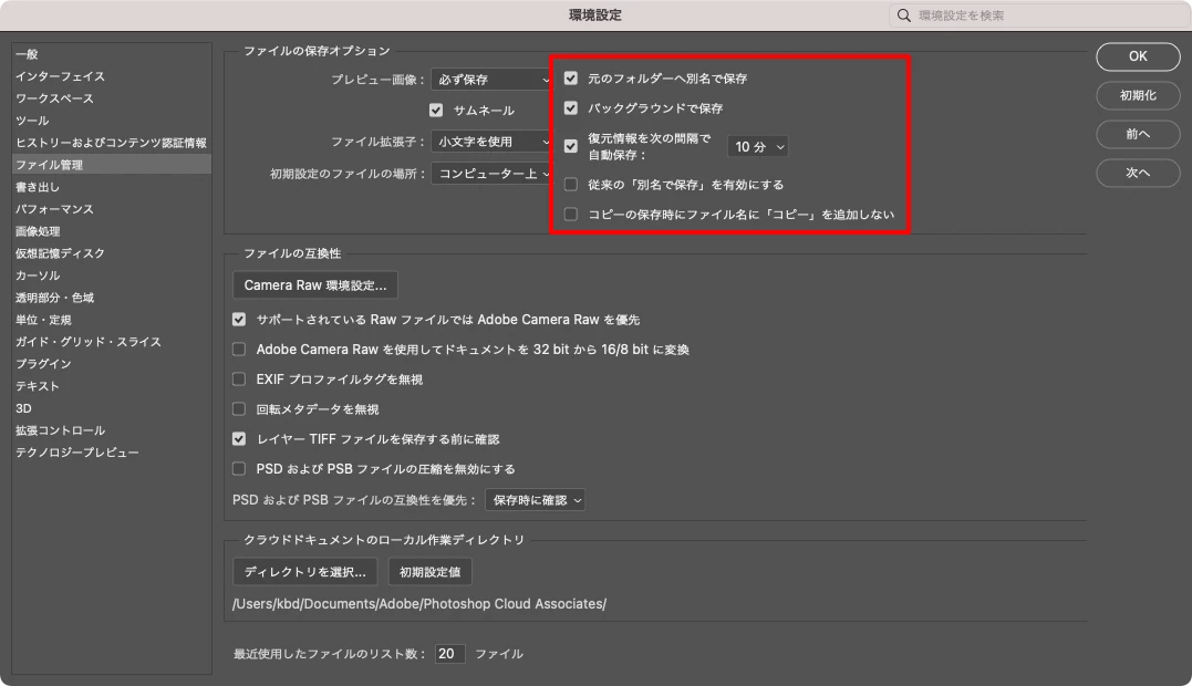 photoshop 24.20 別名で保存 環境設定で別名で保存できるようにしたが、別名で保存できず