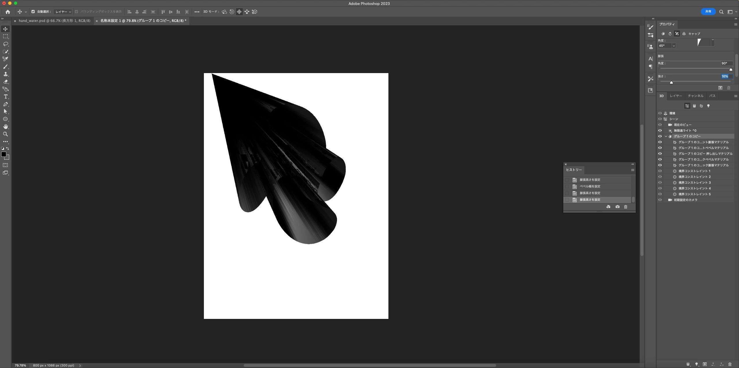 Photoshopの3D機能は昨年段階で廃止されており(まあメニューは見えるんですが)現行バージョンではまともな処理結果は期待できないと思って差し支えありません。