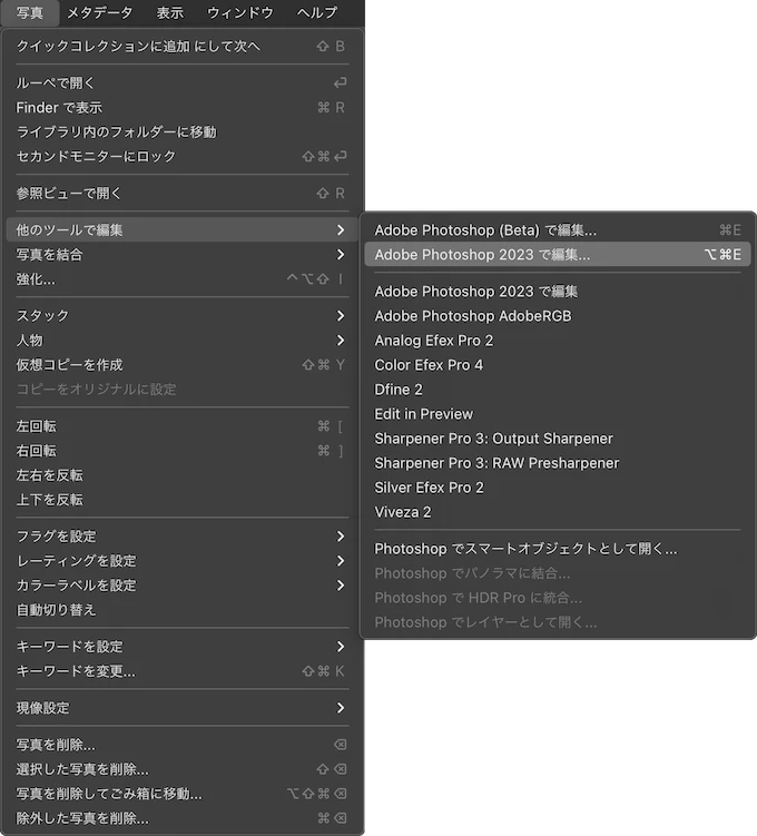 Photoshop(Beta)をインストールしたらLightroomから他のツールで編集を選ぶ時にBeta版ではなく普通のPhotoshopを選ぶ事が出来なくなってしまったのですが、どうすれば変更出来ますか?