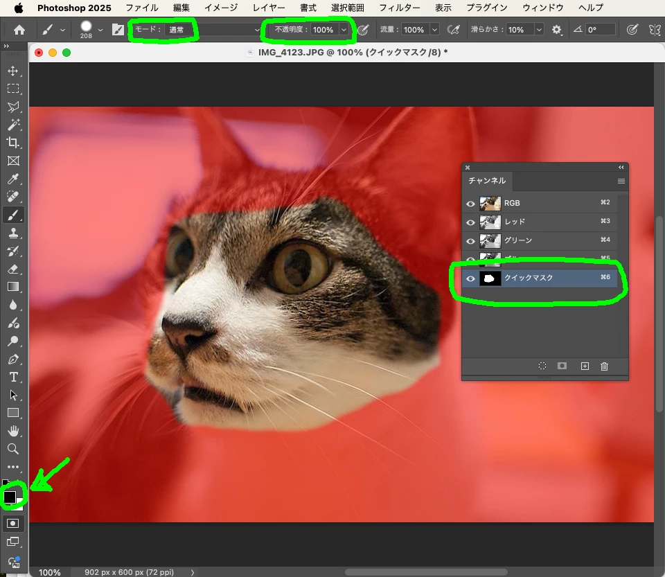 Photoshop2025 クイックマスク&ブラシツールで範囲選択ができない