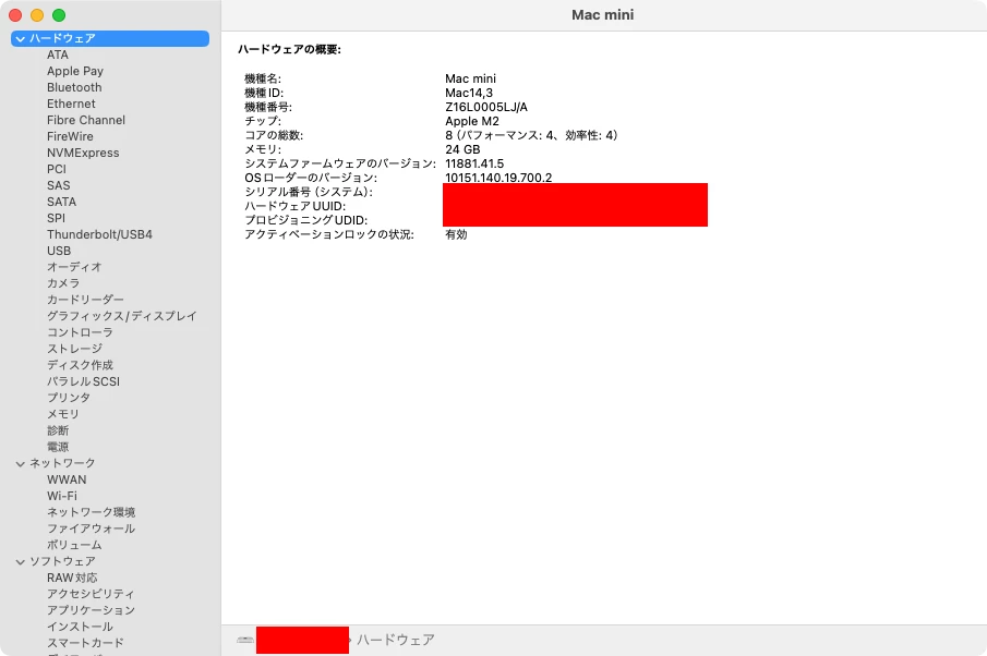 アプリケーション > ユーティリティ > システム情報