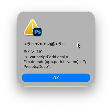 photoshop 27.0で、「描画」フィルターの「炎・木・ピクチャフレーム」を選ぶと、共通でエラーが出ます。