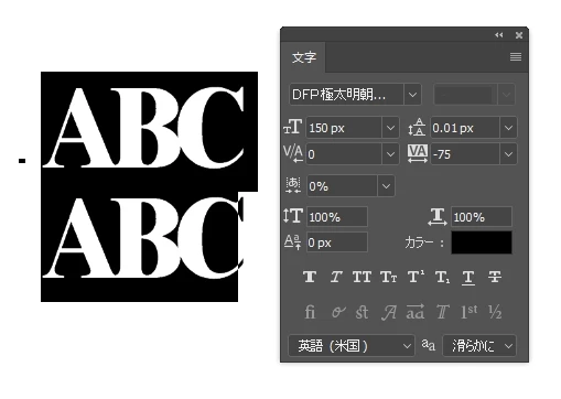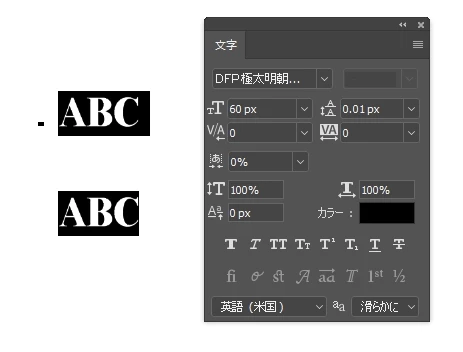 PhotoshopCC2017で行間を最小の0.01pxにしても文字サイズにして2行分も行間が空いてしまいます。