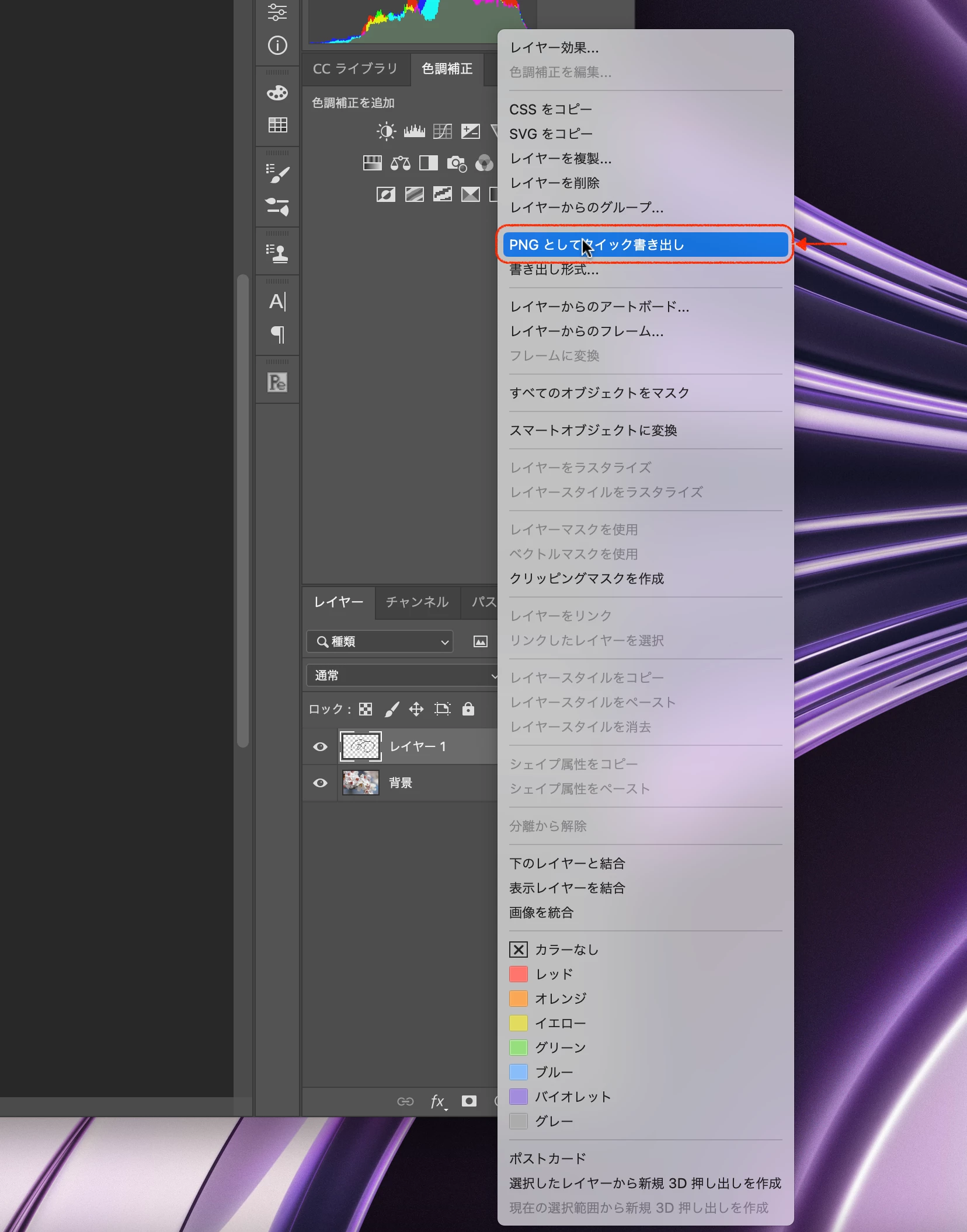 pngとしてクイック書き出しした場合、従来のように背景を透明にして保存できない