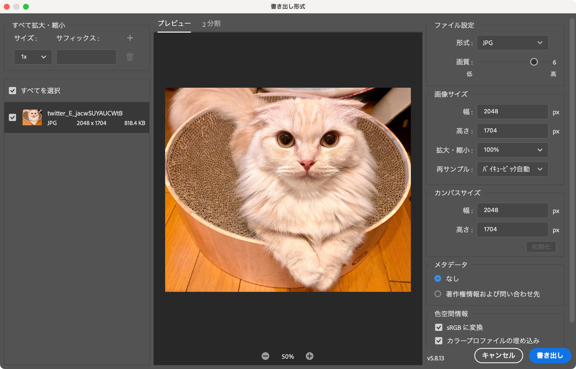 「書き出し形式」を使用するメリットは、ご覧のように各種設定項目の数に表れています。
