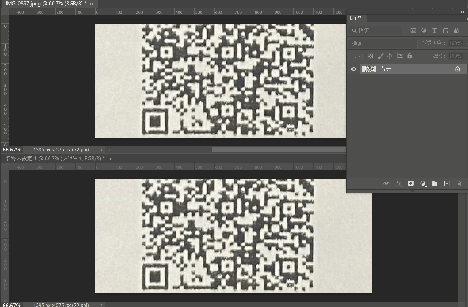 レシートで発行されたようなQRコード(漏洩防止の為半分)を背景透過したい場合、どのようにして背景透過をすればいいでしょうか。