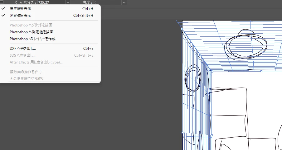 VPの面作成ツールで面を作成後、【Photoshopへグリッドを描写】が選択できません。