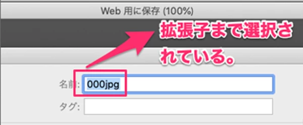 Web用に保存でjpegファイルの拡張子まで選択されてしまい毎回拡張子を入力しています。