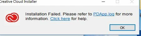Creative Cloud Pacakgerツールを使用して「Photoshop2018」インストーラー作成しインストールしましたが、「Installation Failed. Please refer to PDApp.log for more information Click here for help.」と表示されました。