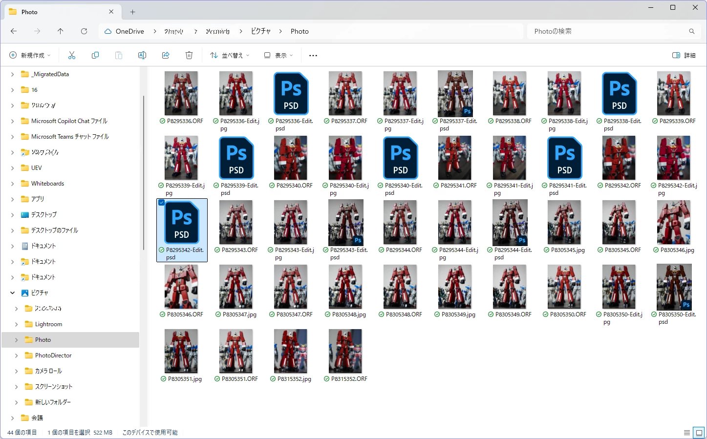 (私は動画編集メインなので、共同作業者との素材のやり取りでOneDriveを通じてPSDファイルもよく扱うのですが、PSDの縮小版が表示されるのは何かと便利ですね。)