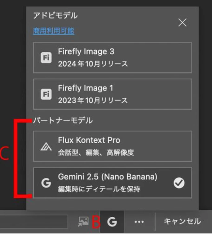 https://community.adobe.com/t5/photoshop-beta-%E3%83%95%E3%82%A9%E3%83%BC%E3%83%A9%E3%83%A0-discussions/photoshop-beta-gemini-2-5-flash-image-nano-banana-%E3%81%A8-flux-kontext-pro-models-%E3%82%92photoshop%E3%81%AB%E6%90%AD%E8%BC%89/td-p/15521133?profile.language=ja