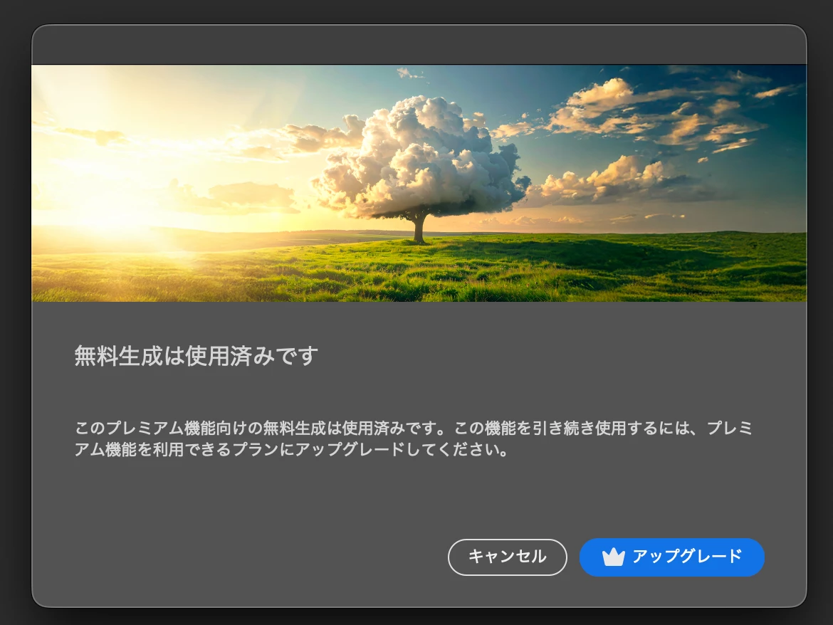 先日「無料生成は使用済みです」とメッセージが表示され使用できなくなりました。