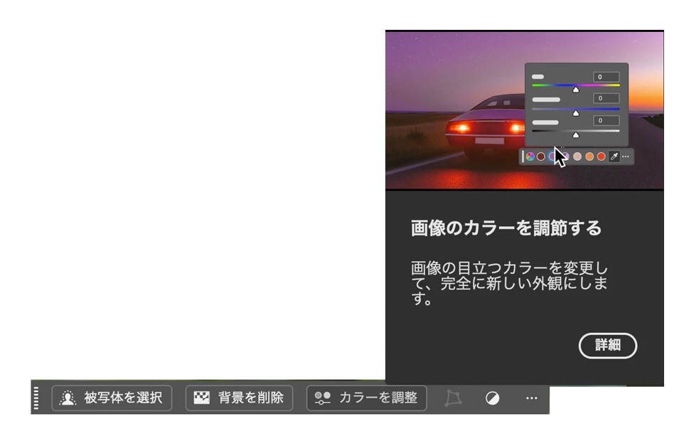「カラーを調整」は画像中の6つの主要なカラーの色彩、彩度、明度を簡単に変える新機能です。