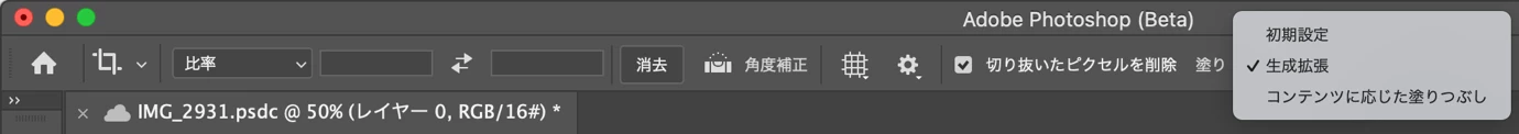 Photoshop (Beta) デスクトップ版の新機能:「生成拡張」