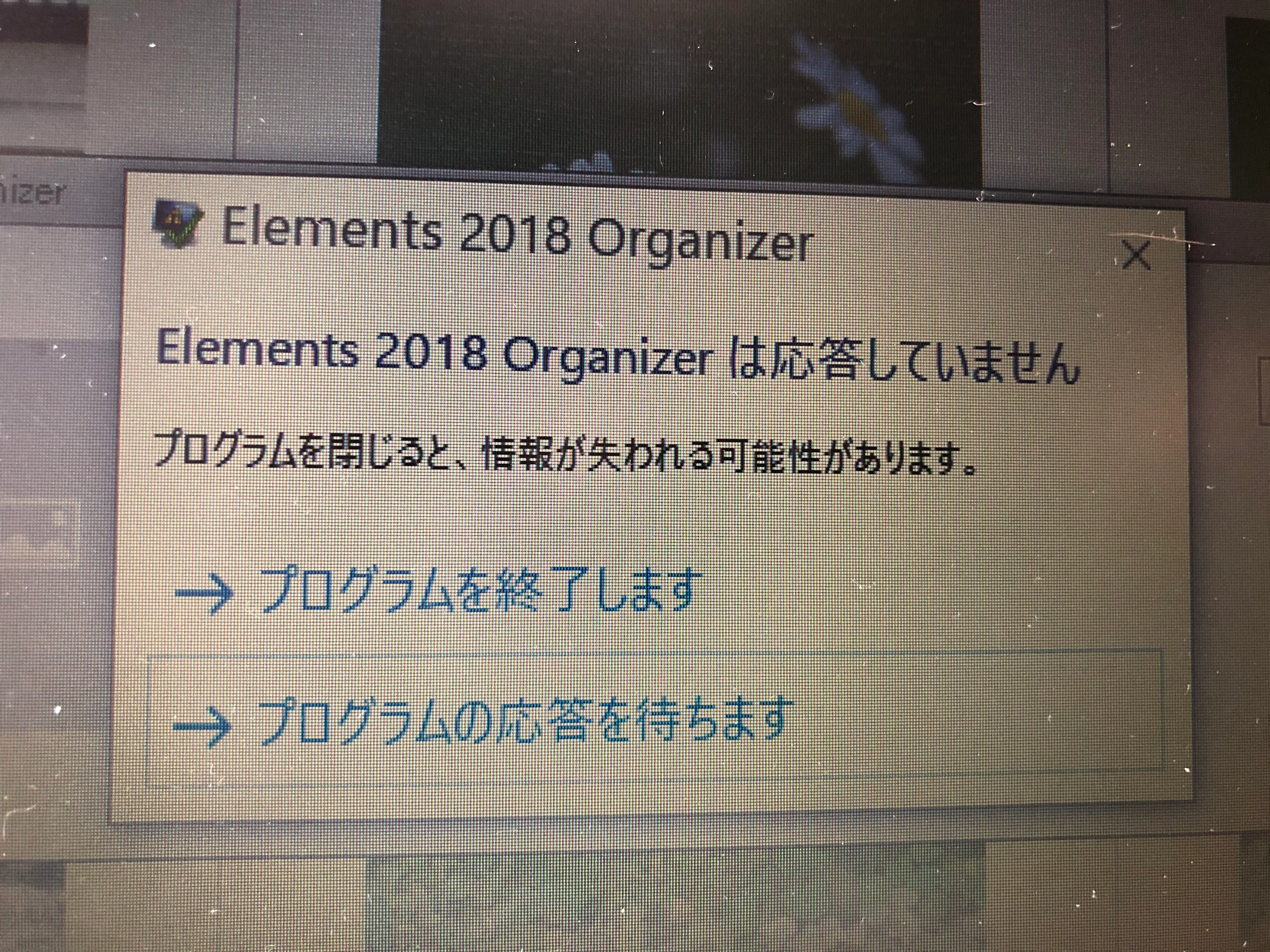 2週間程前からフォトショップエレメンツ2018の、編集画面→エキスパート→下の整理ボタンを押すと、