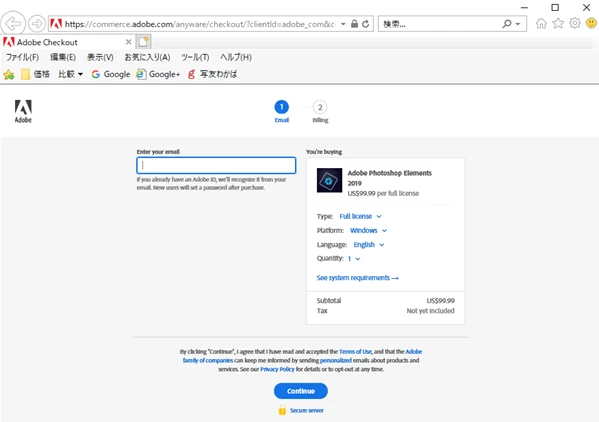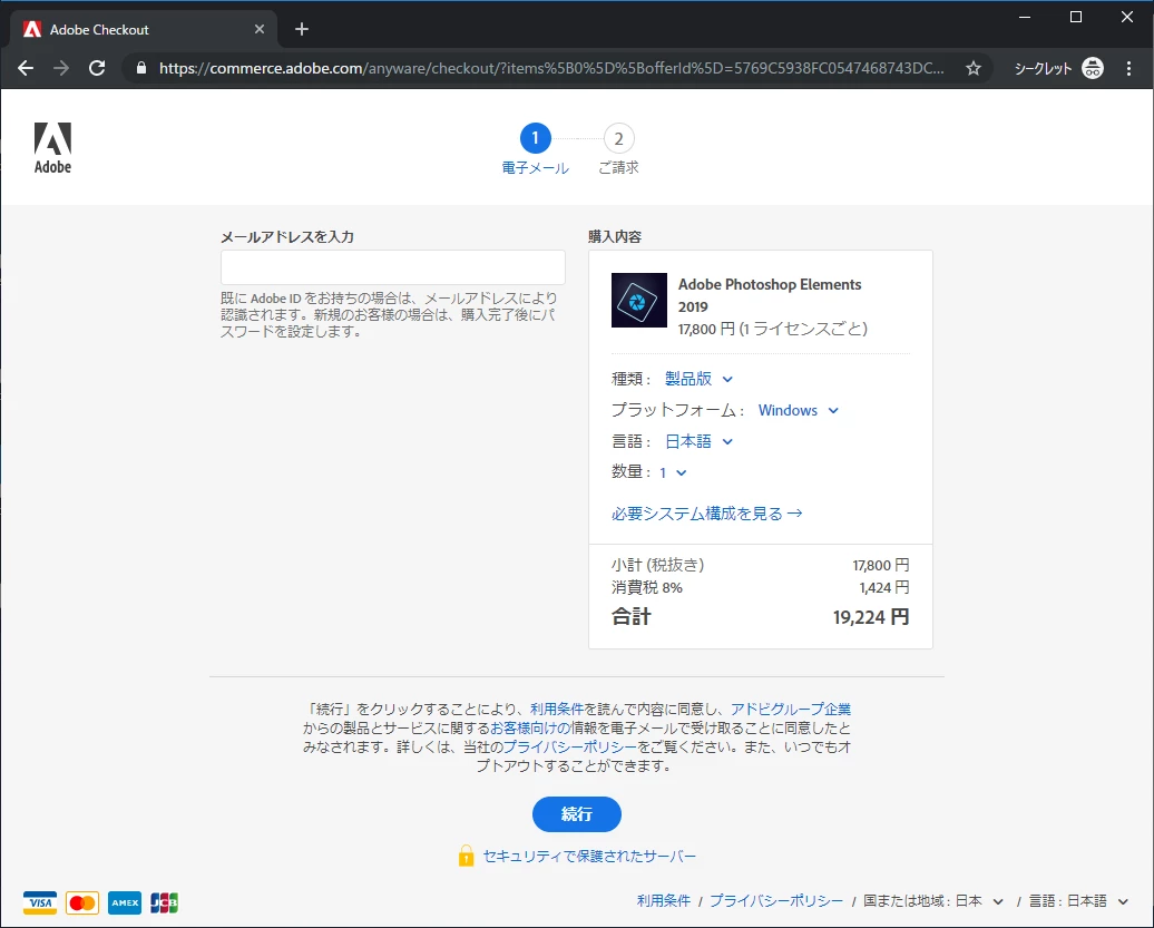 画面を拝見するに、Photoshop Elements 2019の購入画面で間違いないのですが、