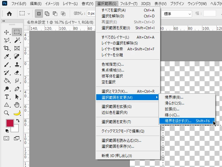 ちなみに,Photoshopの場合は[選択範囲を変更]の中に[境界をぼかす]があります。