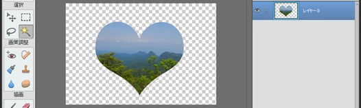 写真の型抜きを行うと、背景の白色が残り、ハート型抜きなどハートのままで切り抜きしたいのですが教えてください