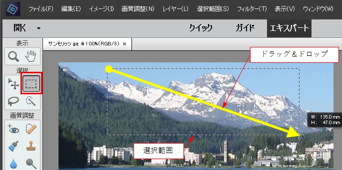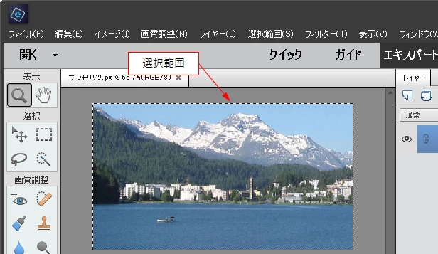 エレメントを開き、写真の編集を行っています。