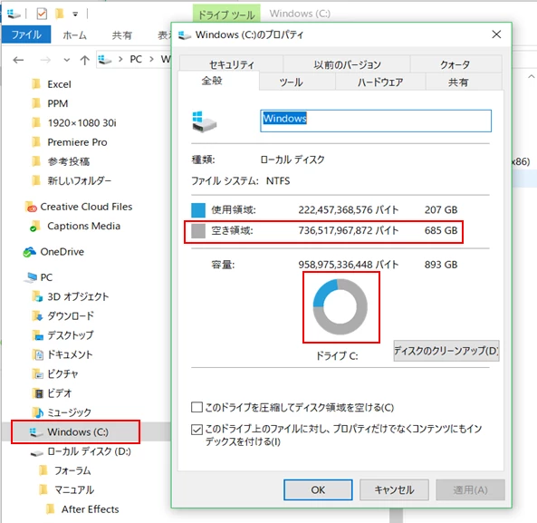 Cドライブの空き領域は、1か月おきくらいにはチェックしながら進めると良いと思います。