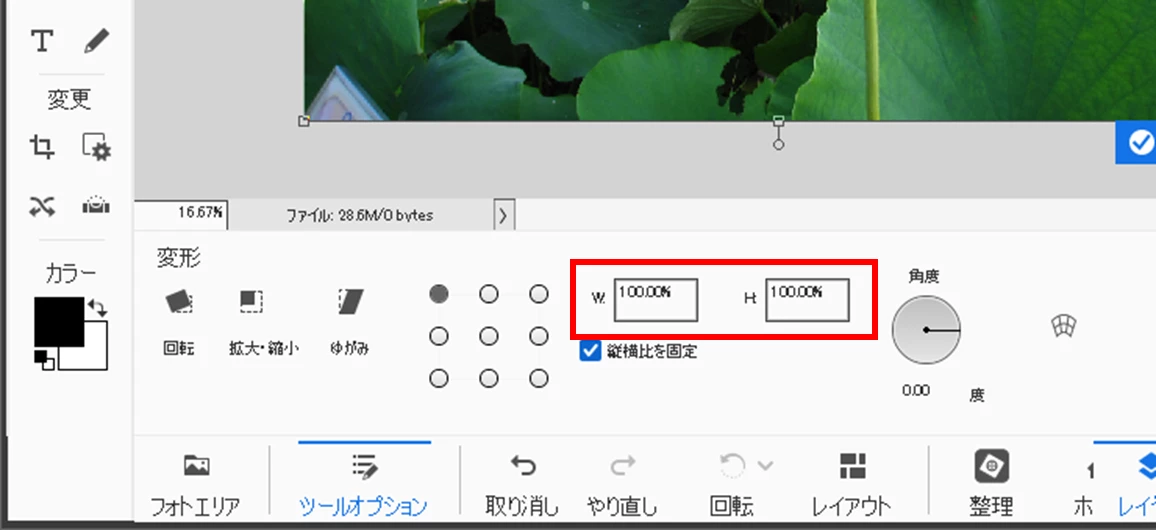 この例ではW 1600px × H 2403px、350dpiの画像をA4用紙に印刷しようとしています。