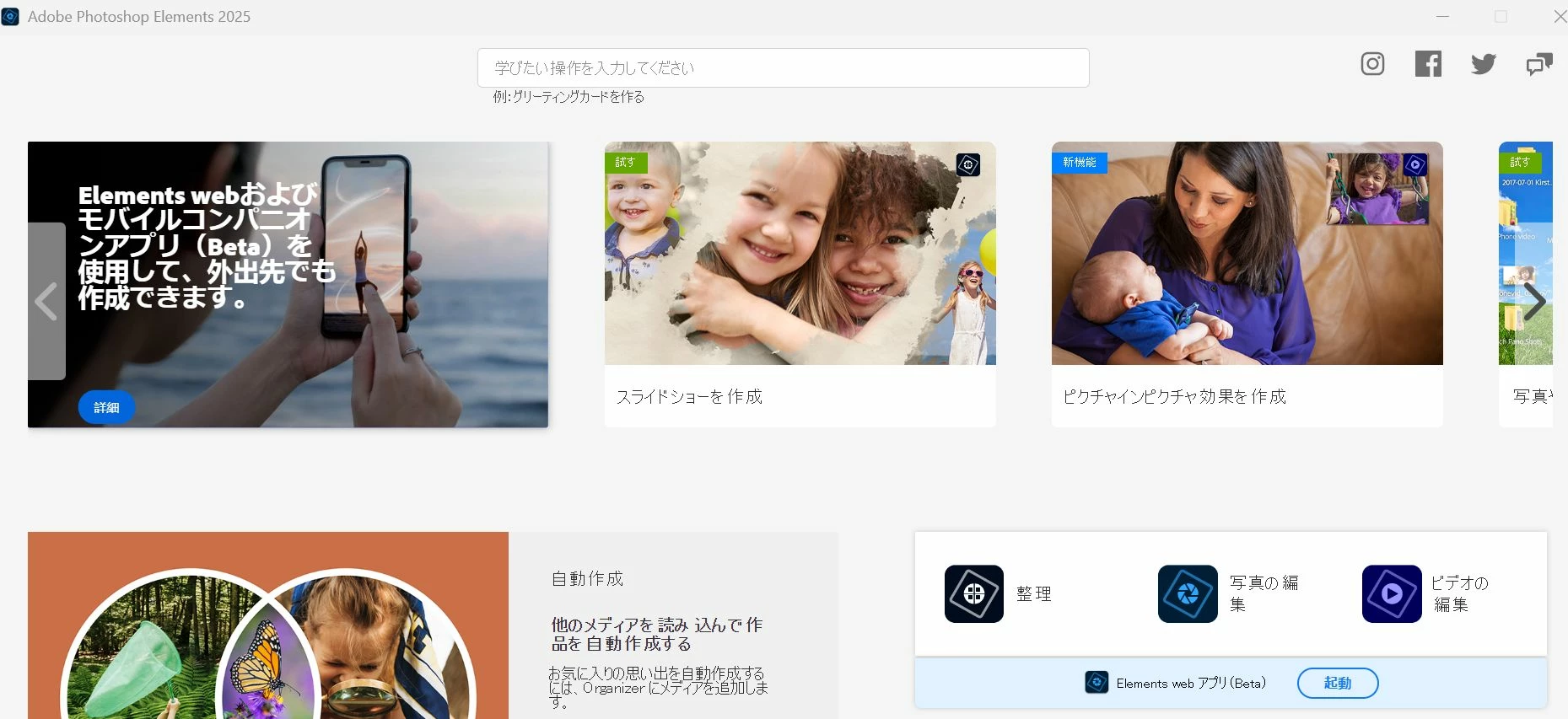 Photoshop Elements2025にアップグレードしたのですが、インストール後、立ち上げようとすると、毎回こちらのスタート画面?の表示がされてしまいます。すぐに写真の編集画面が立ち上がるように設定したいのですが、方法はありますか?