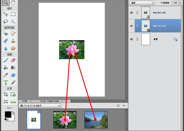 2枚の画像を読み込みます。フォトエリアを開くと下図のようになります。