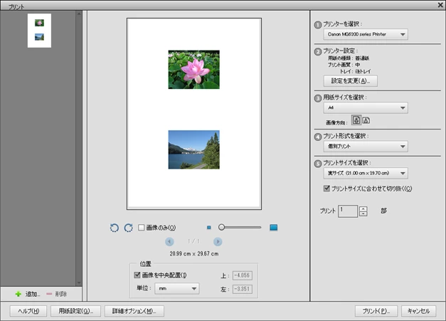 ⑦プリンターの設定を行い、印刷します。下図はキャノンの場合です。