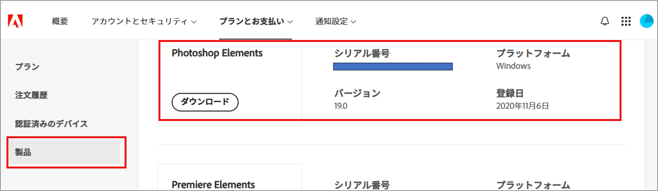 2021年9月に購入した Elements 2021 が新しいPCにダウンロードできません