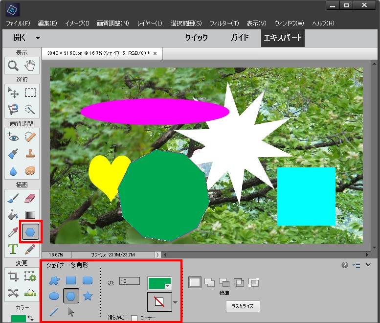 elements2020では4Kモニターで多角形ツールは使えないことは知っているのですが、多角形ツールが使えないというのはやっぱり結構不便です。2021では使える様になったのでしょうか?