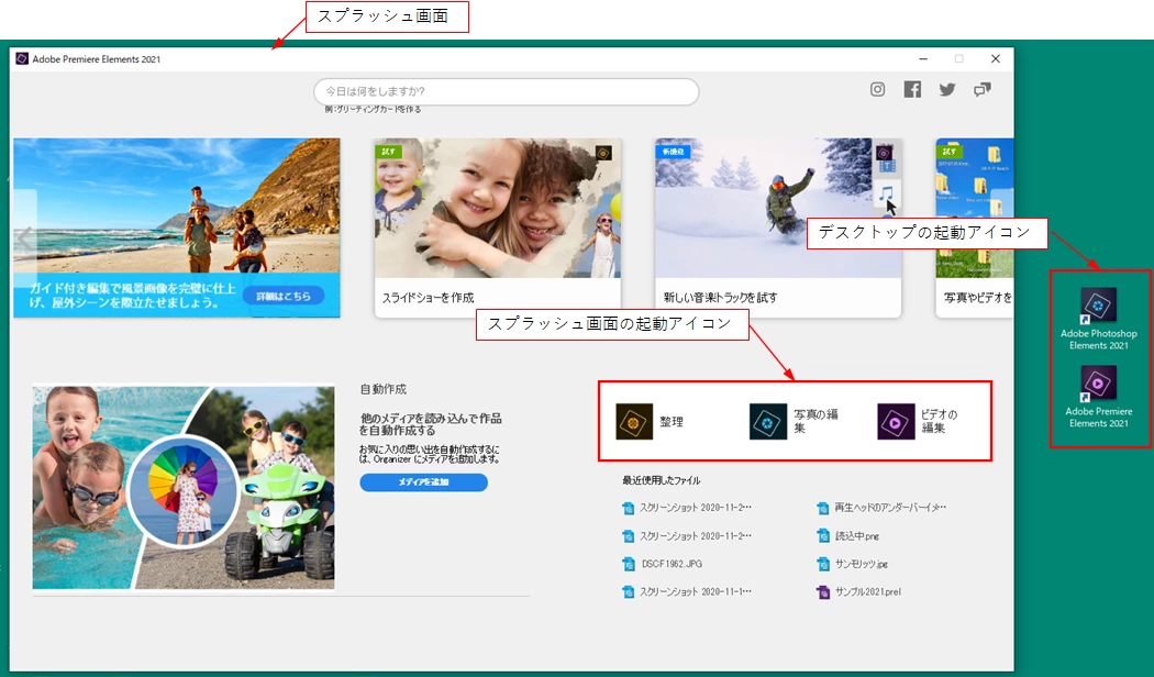 早速インストールしてデスクトップ画面に貼り付けられショートカットアイコンをダブルクリックしたときはElements 2021は問題無く起動し,使用することができました.