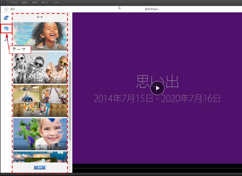 テーマが見つかりませんでした。スライドショーの機能をしようするには、アプリケーションを再インストールしてください。と表示される。