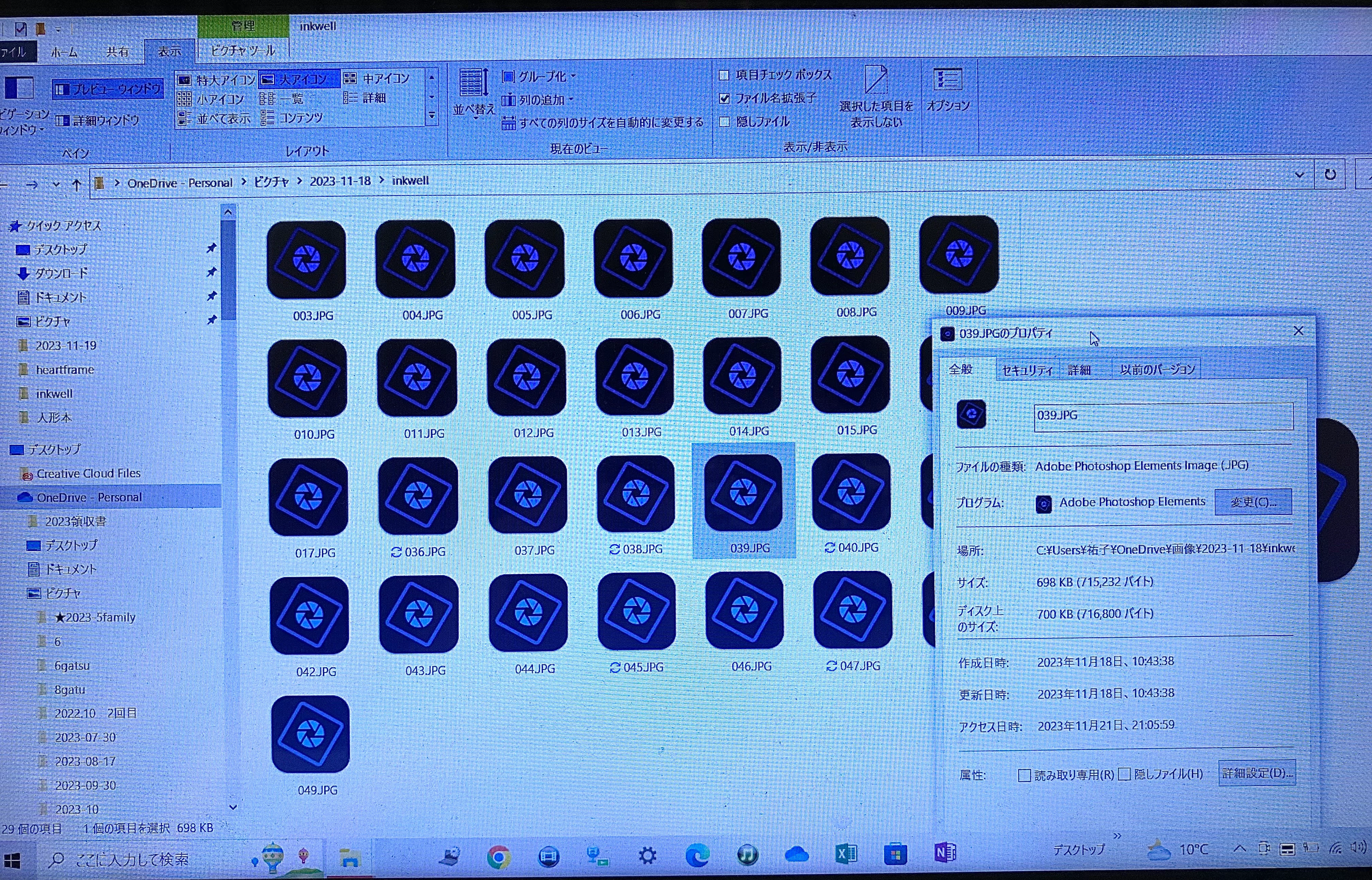 はじめまして。Windows10.Photoshopelement2023使用してます。1週間くらい前からサムネイルの表示がすべて青いマークになりました。開くと写真は表示されますが困ってます。