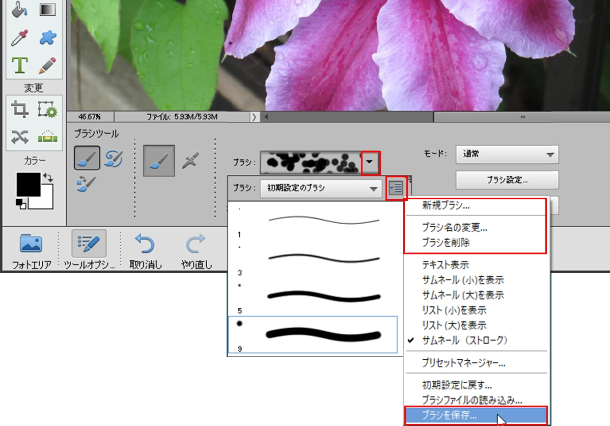 ですから、ブラシの保存という箇所もわからず色々と探してみましたが、どれも無理でした。