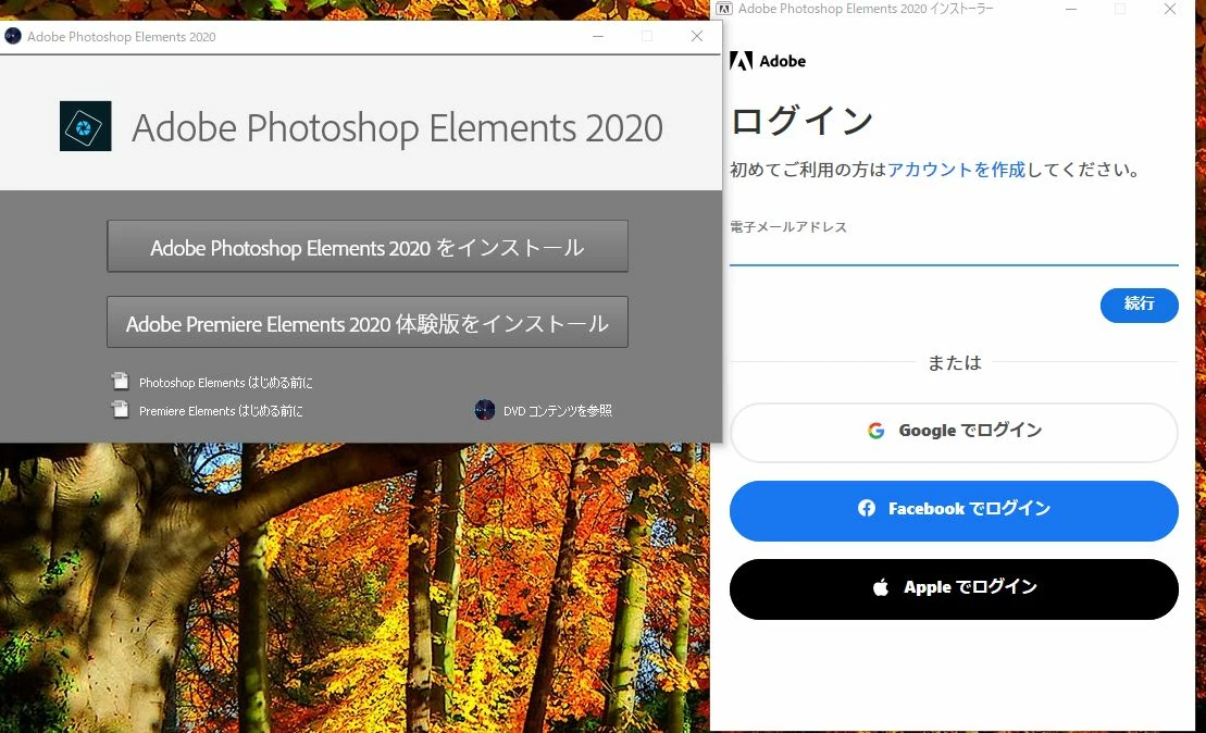 Photoshop Element 2020 インストーラーからログインできない