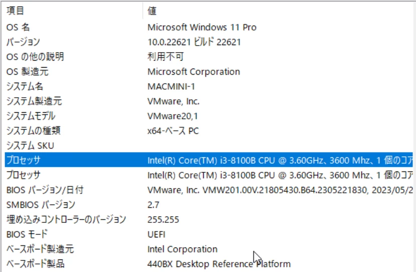 Mac mini M3上、VMware FusionでWin 11 Proを利用。