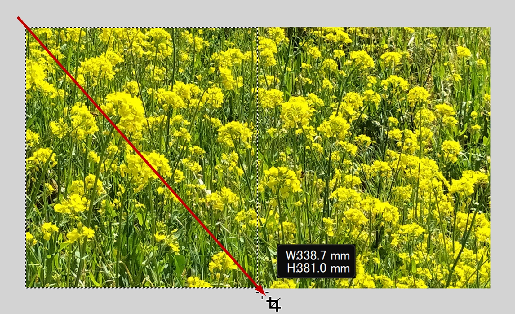 ③切り抜く範囲をドラッグ&ドロップします。選択した範囲が破線で表示されます。サイズが小さくなった場合は辺をドラッグすれば、修正できます。