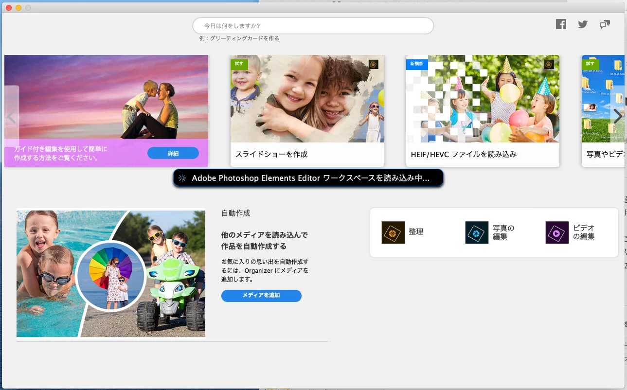 またAdobe photoshop elements 2020のアイコンをwクリックし、下図のように写真の編集のphotoshopのアイコンをwクリックしてもAdobe Photoshop Elements Editor ワークスペースを読み込み中...は出ますが、結局開かれないままです。